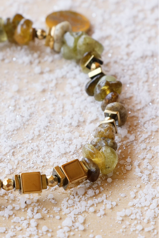 Bracelet positive énergie UTTHANA Renouveau & Équilibre Émotionnel en grenat vert