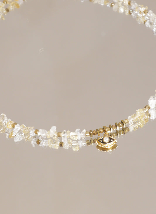 Collier Tour de cou LAKSHMI Abondance & Énergie Positive en Citrine pendentif œil de protection