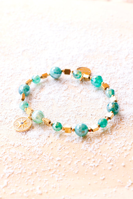 Bracelet SHANTI en Agate Émeraude pendentif boussole – Stabilité & Sérénité