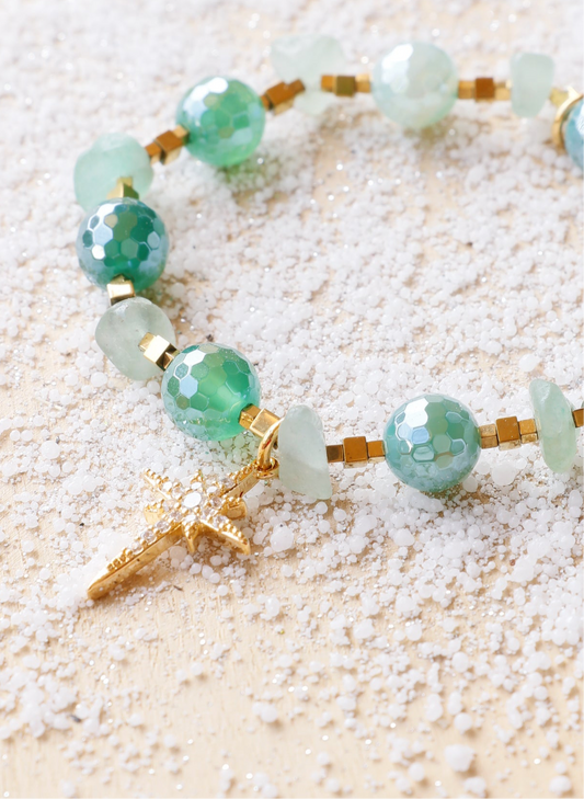 Bracelet SHANTI en Agate émeraude pépites d’aventurine et pendentif étoile – Stabilité & Sérénité