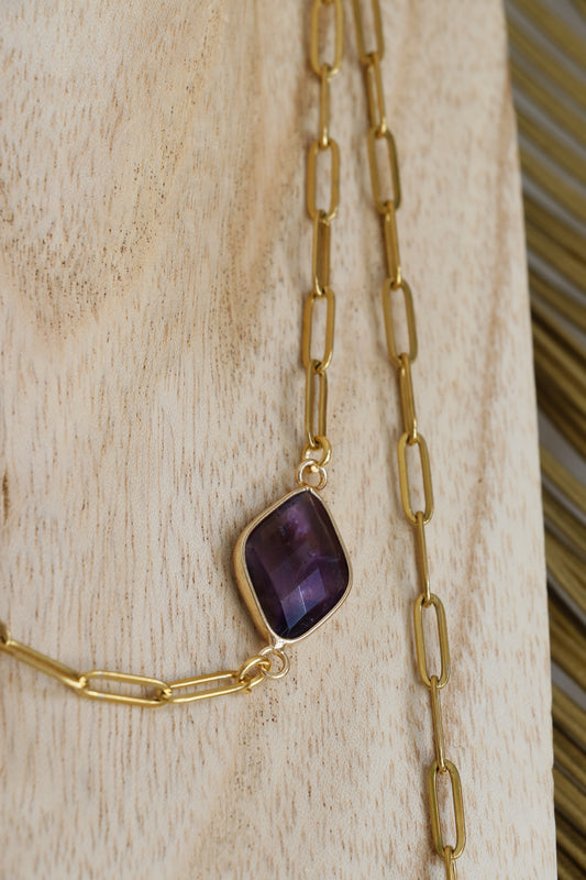 Collier écharpe Mantra Apaisement & Clarté Mentale en Amethyste pendentifs scarabée