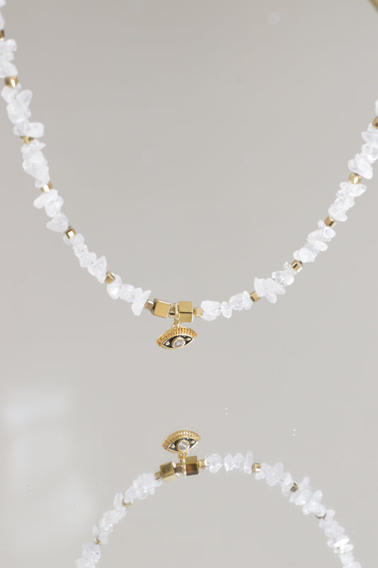Nos colliers mêlent design raffiné et symbolique des pierres naturelles. Chaque minéral est choisi pour sa beauté brute et pour l’énergie qu’il soutient : confiance, protection, apaisement ou clarté intérieure.