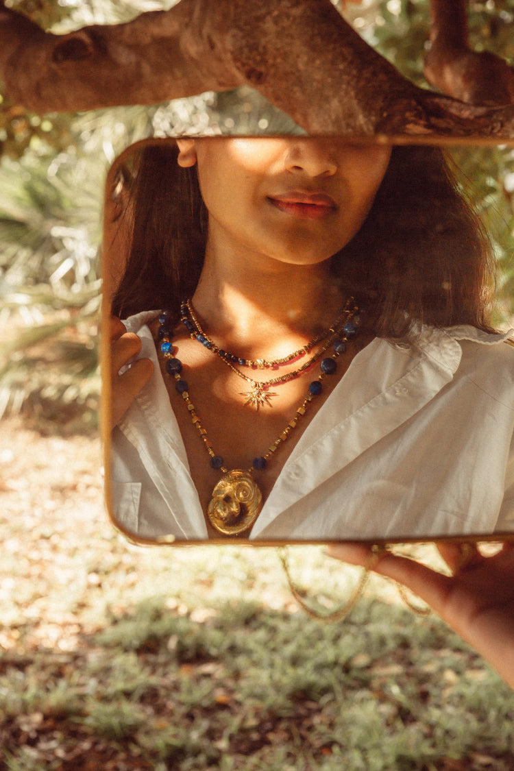 Chainette à lunette JÑĀNA en Lapis Lazuli – Intuition & Communication Authentique