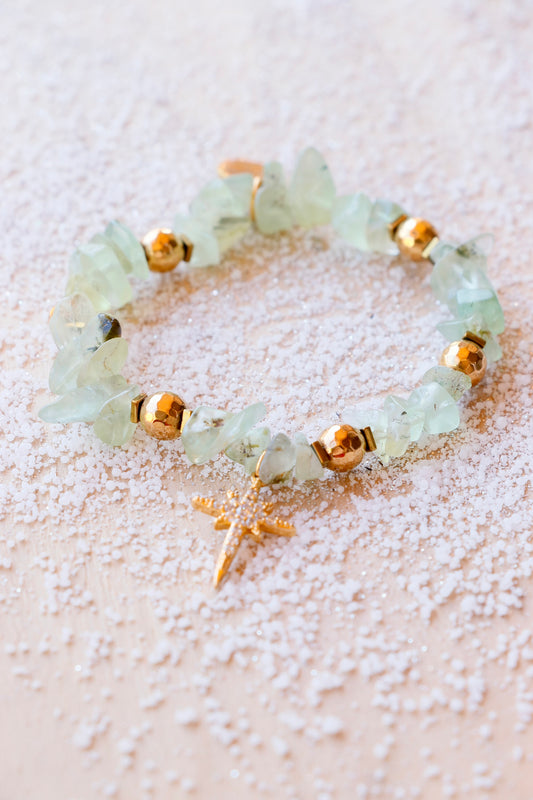 Bracelet HRIDAYA en Préhnite - pendentif boussole céleste | Guérison émotionnelle & ouverture du cœur