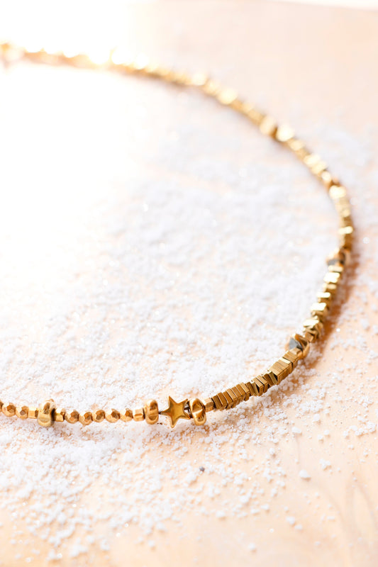 Collier pendentif DHĀRAṆĀ stabilité et ancrage émotionnel en hématite plaquée or