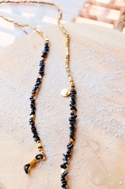 La chaînette à lunette KSHAMA Sautoir Protection & Ancrage en Tourmaline Noire