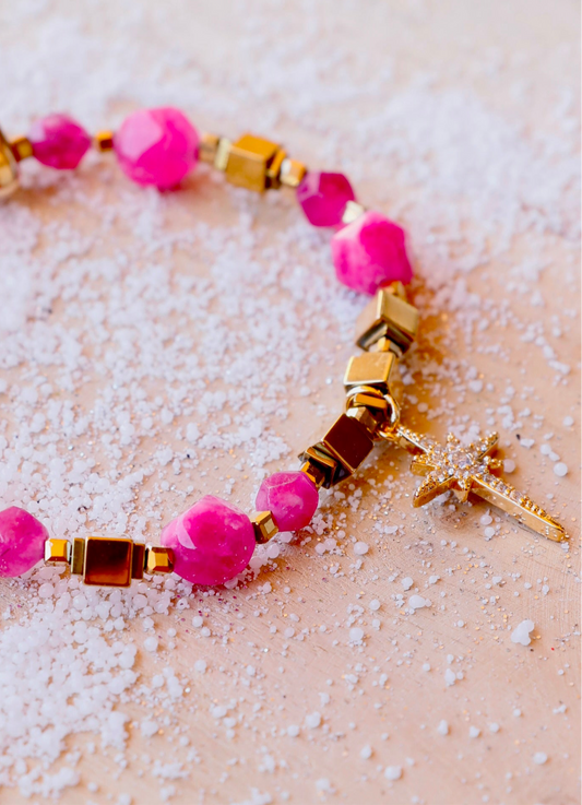 Bracelet SHANTI en Agate Fushia – Stabilité & Sérénité