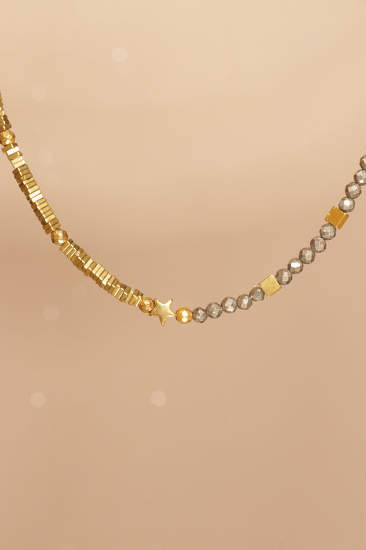 Collier tour de cou VIBHUTI en Pyrite pendentif étoile – Force Intérieure & Rayonnement Personnel