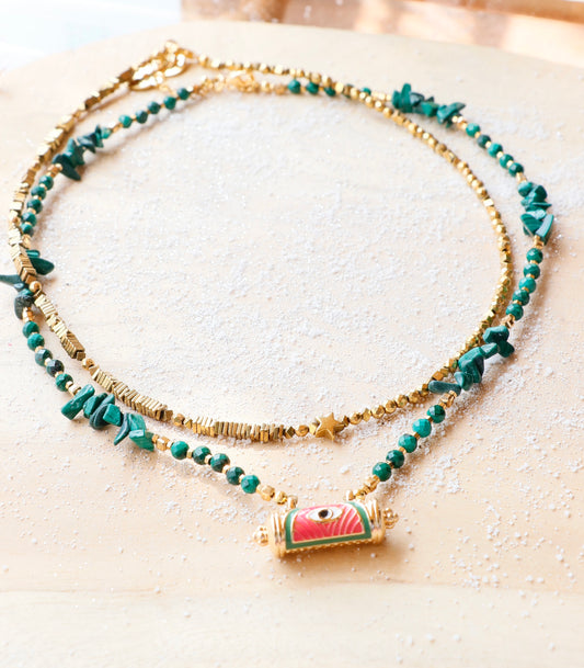 Collier Tour de Cou PARIVARTANA – Transformation & Guérison du Corps en Malachite