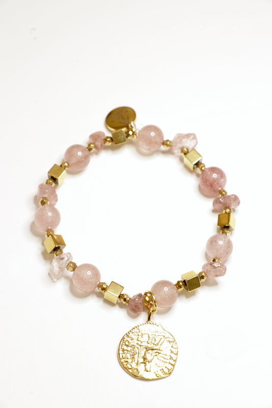 Bracelet RASA en Quartz Framboise Pendentif Lotus