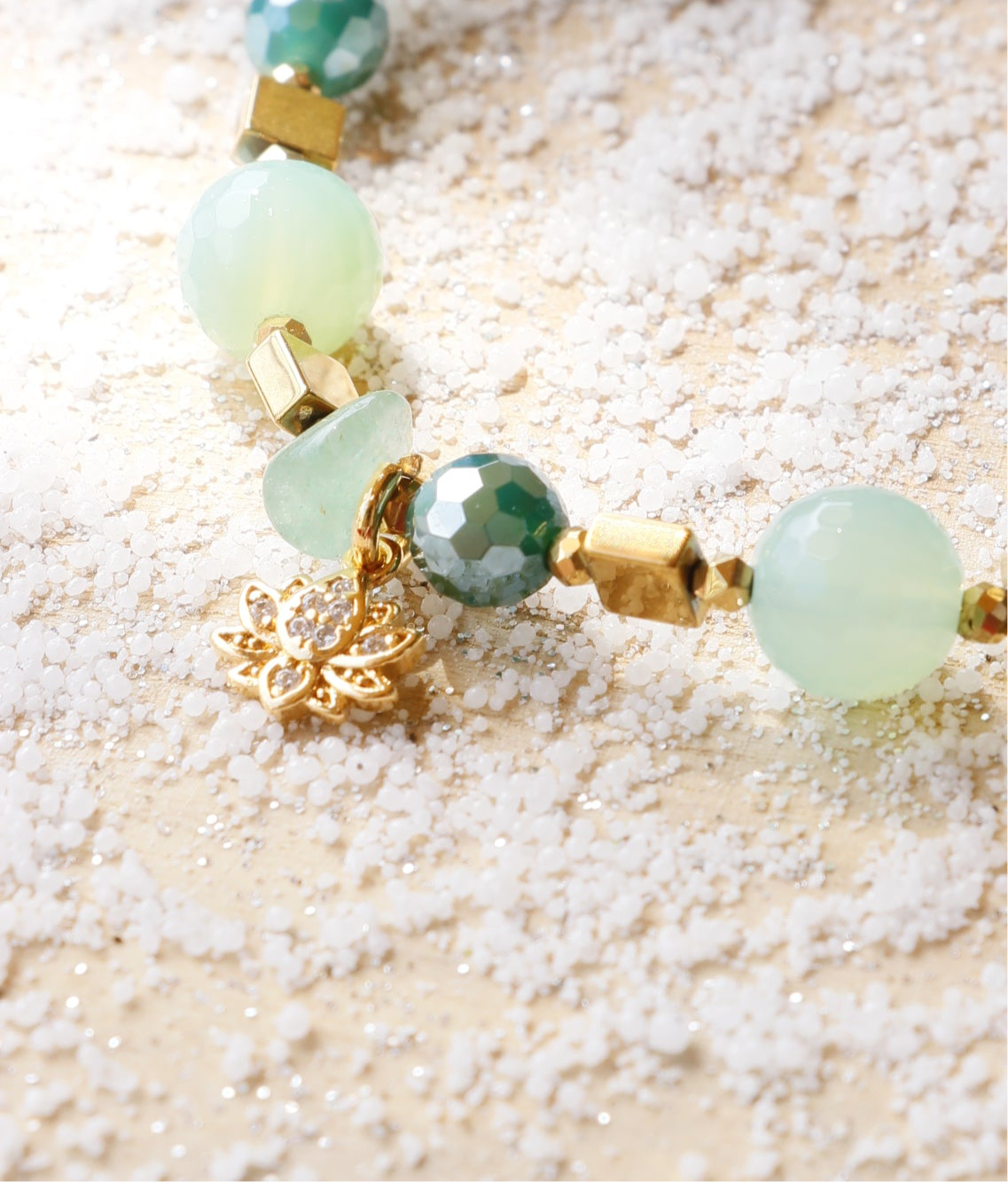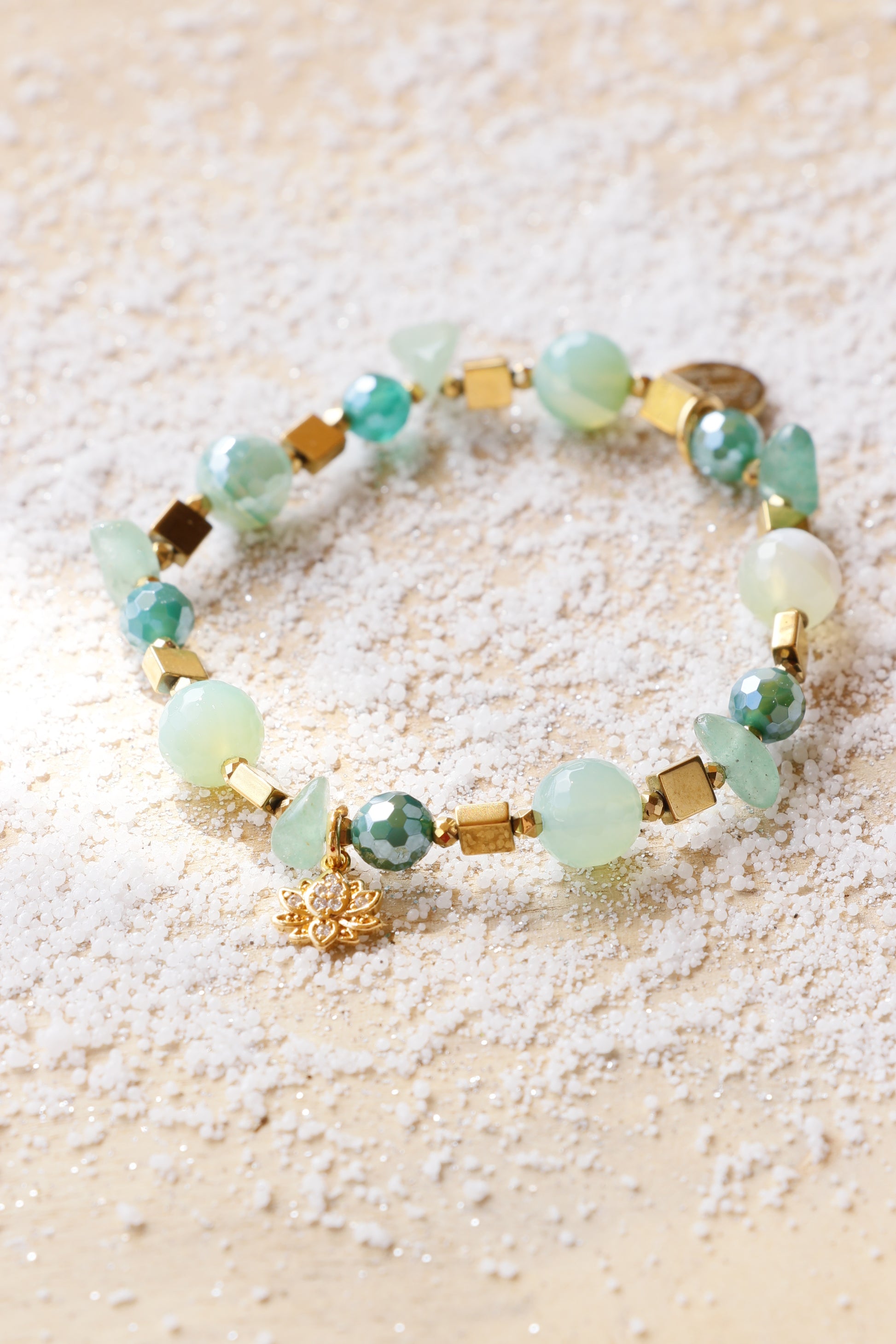 Bracelet SHANTI – Stabilité & Sérénité en Agate Émeraude et Aventurine pendentif Lotus