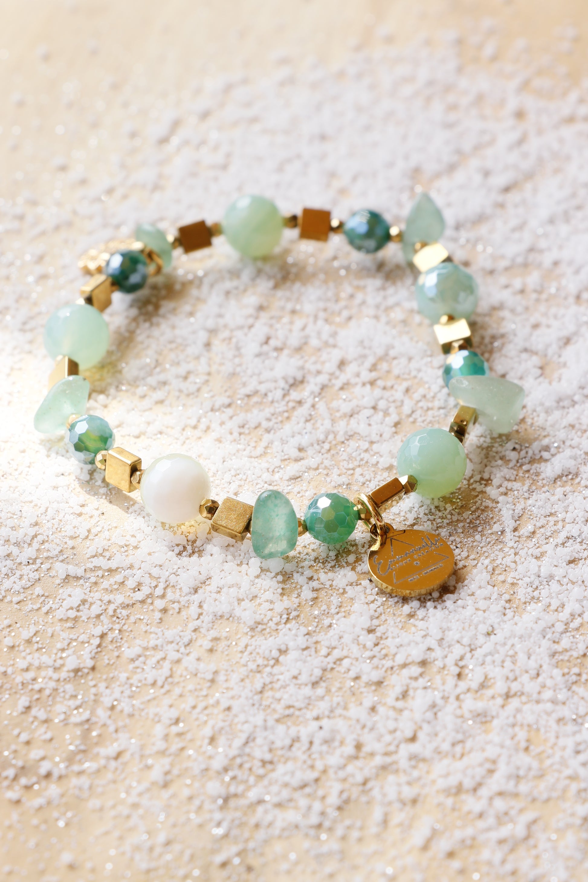 Ce bracelet est une invitation à la lenteur, à la stabilité, à la douceur, porté par l’énergie enveloppante de l’agate émeraude, une pierre apaisante et équilibrante. Le bijou idéal pour ceux qui cherchent à se retrouver, à se calmer, à se poser.