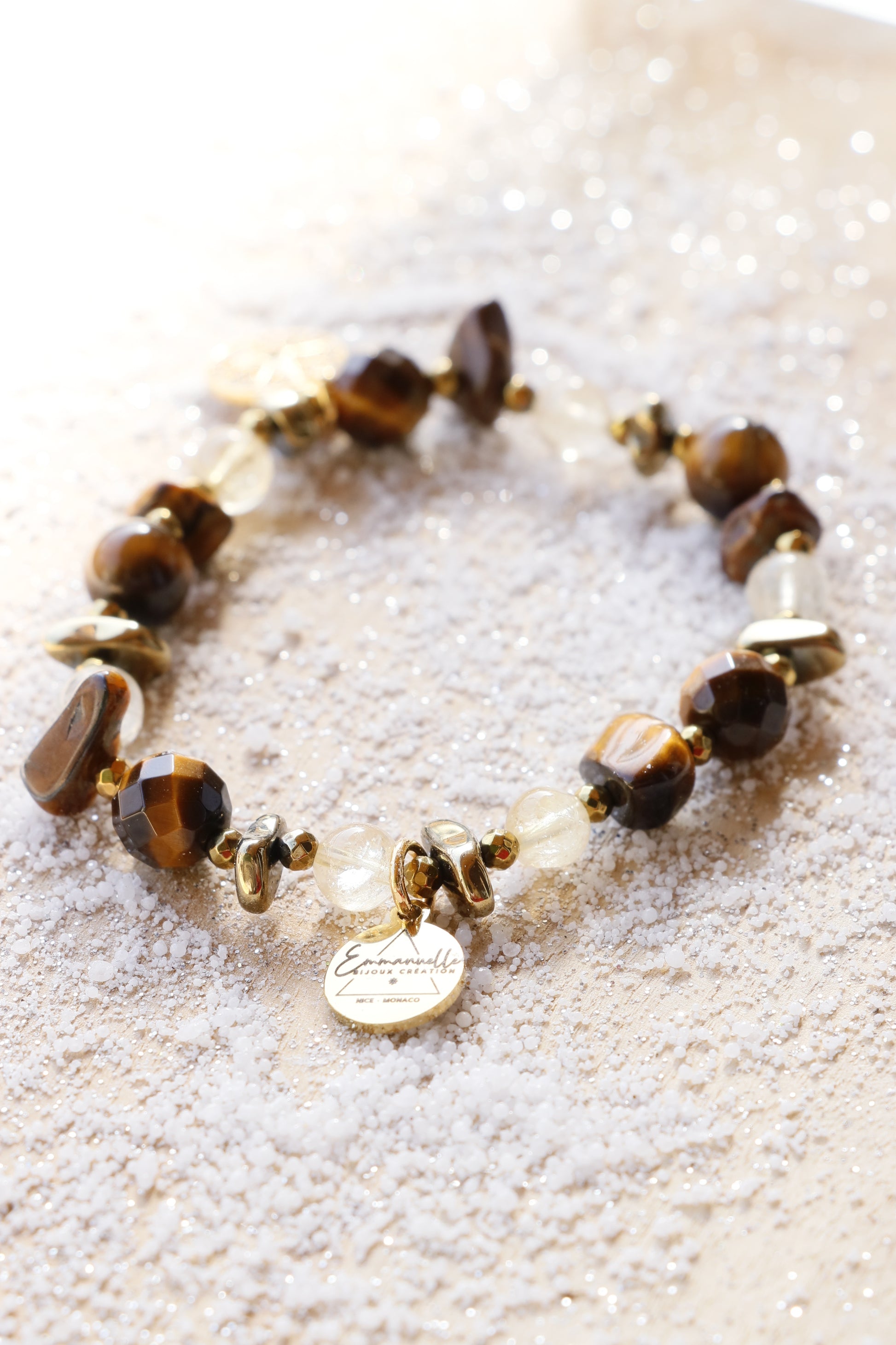 Le bracelet VIRYA en œil de tigre est un bijou bohème chic de haute fantaisie signé Emmanuelle Bijoux Création .