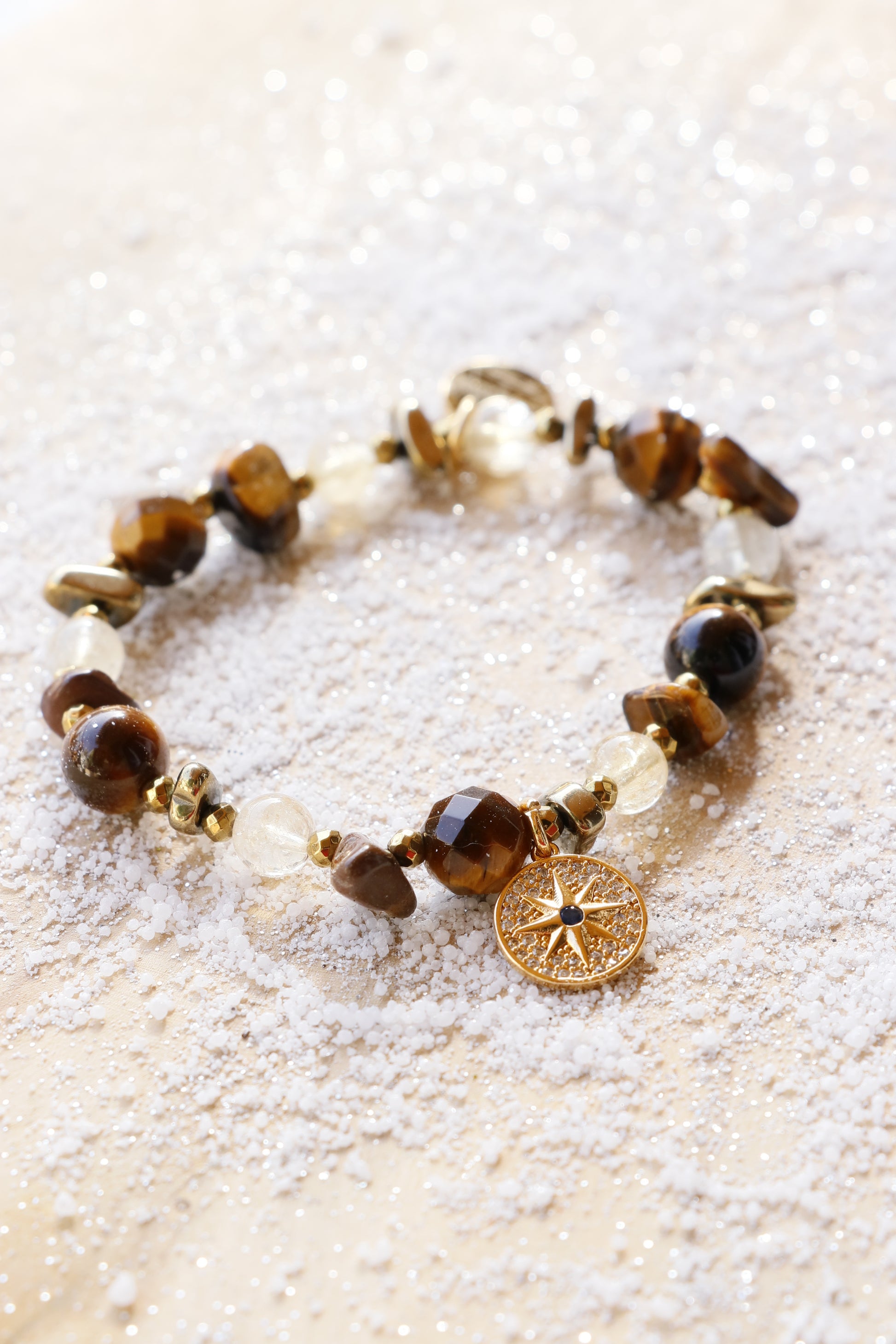 Bracelet VIRYA Confiance & Protection en Oeil de Tigre pendentif boussole