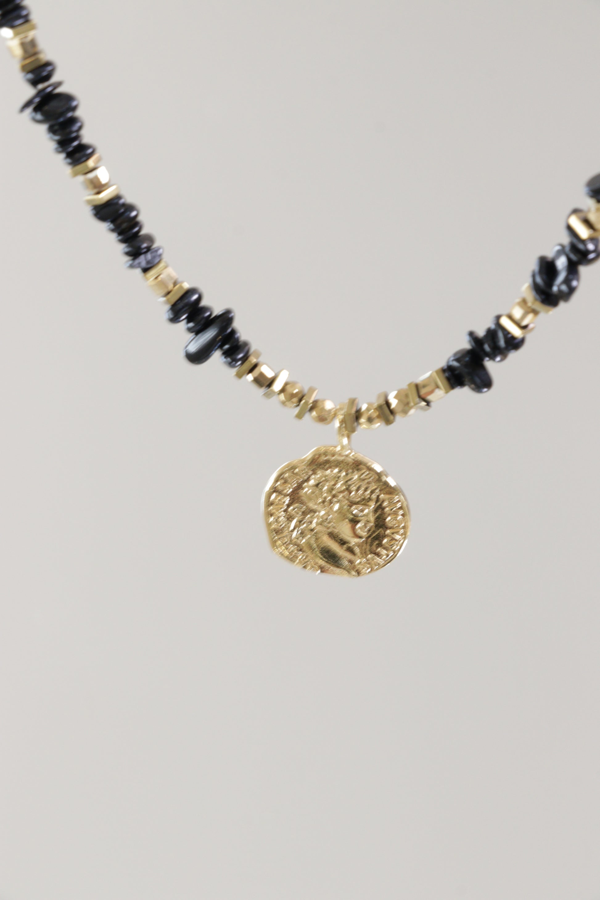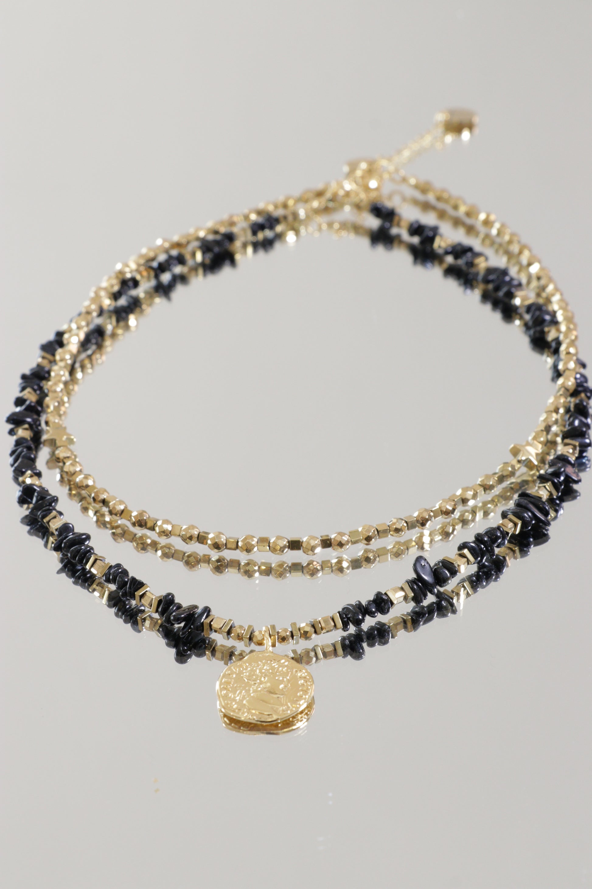 Le collier tour de cou KSHAMA protection et ancrage en tourmaline noire est un bijou bohème chic de haute fantaisie signé Emmanuelle Bijoux Création.