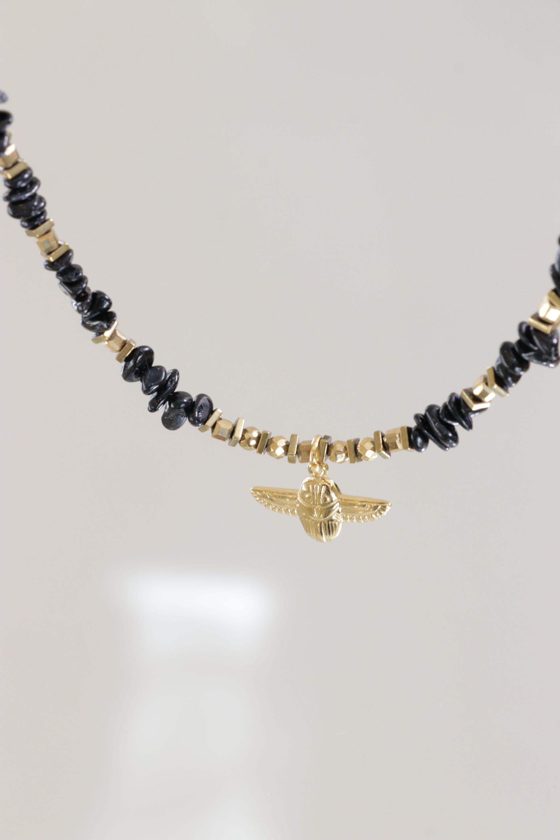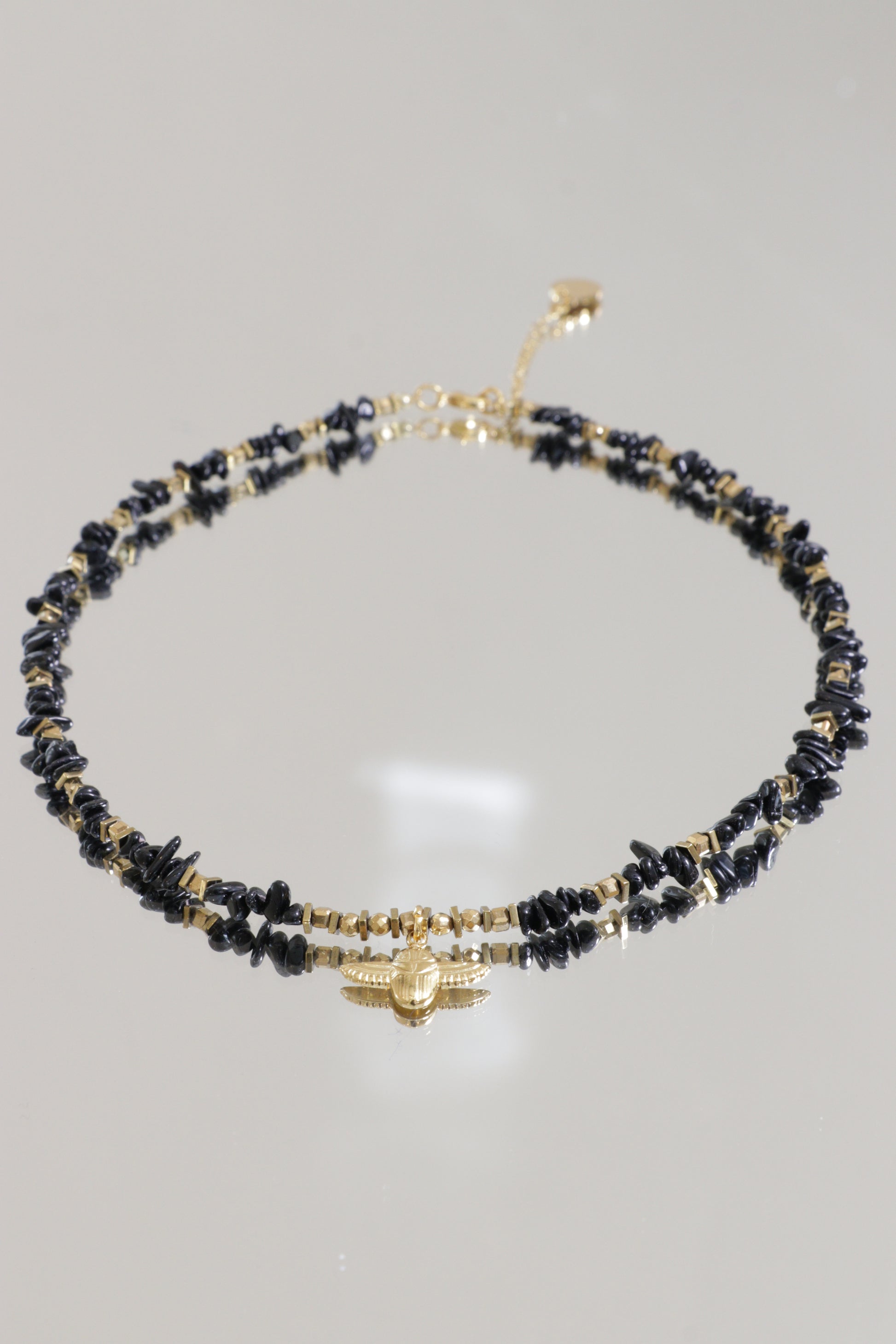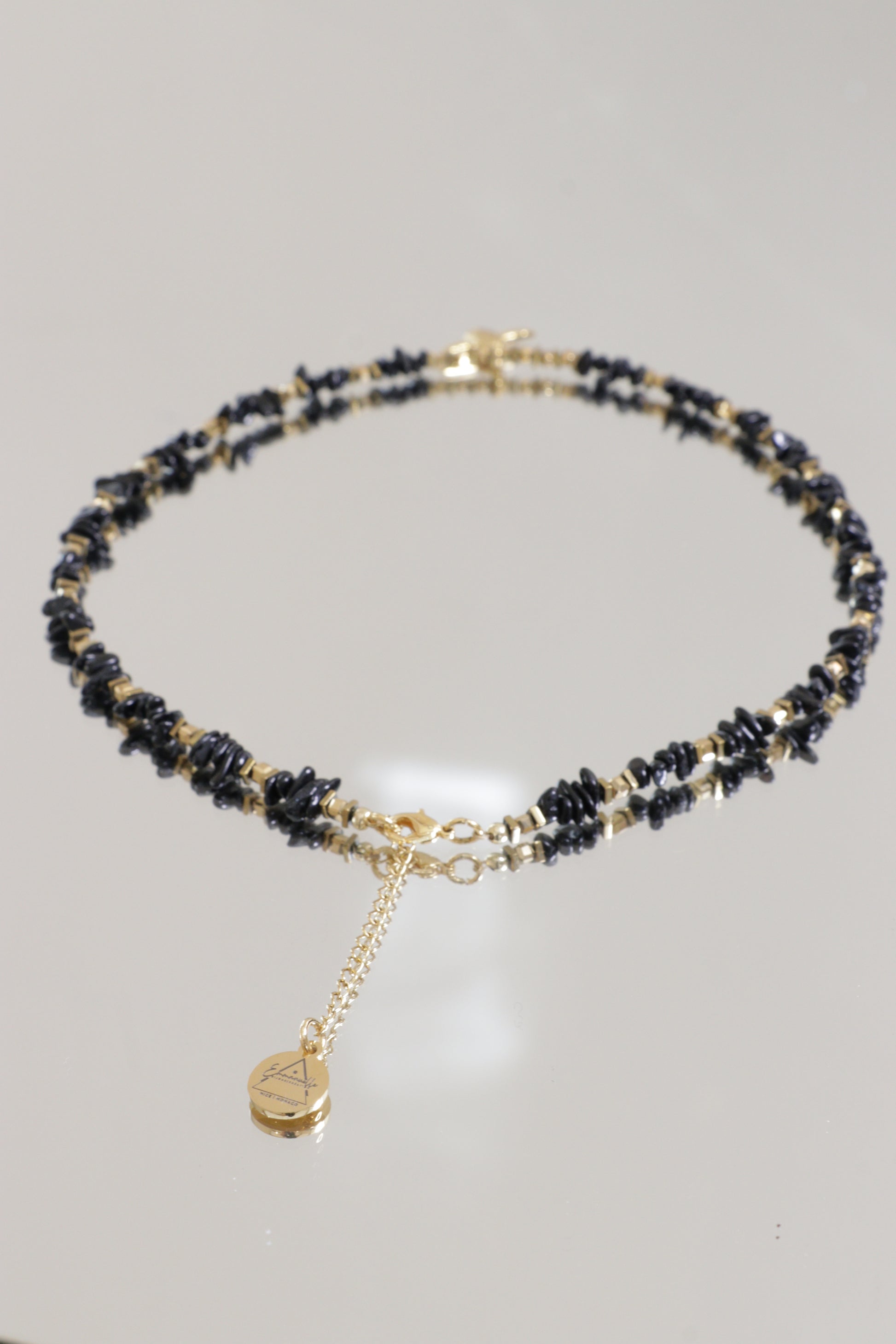 Ce collier honore cette puissance tranquille avec la tourmaline noire, pierre d’ancrage et de protection absolue. Pensé comme un talisman énergétique, il vous aide à vous protéger des ondes négatives, à rester centré·e et à cultiver une stabilité profonde, même en pleine agitation.