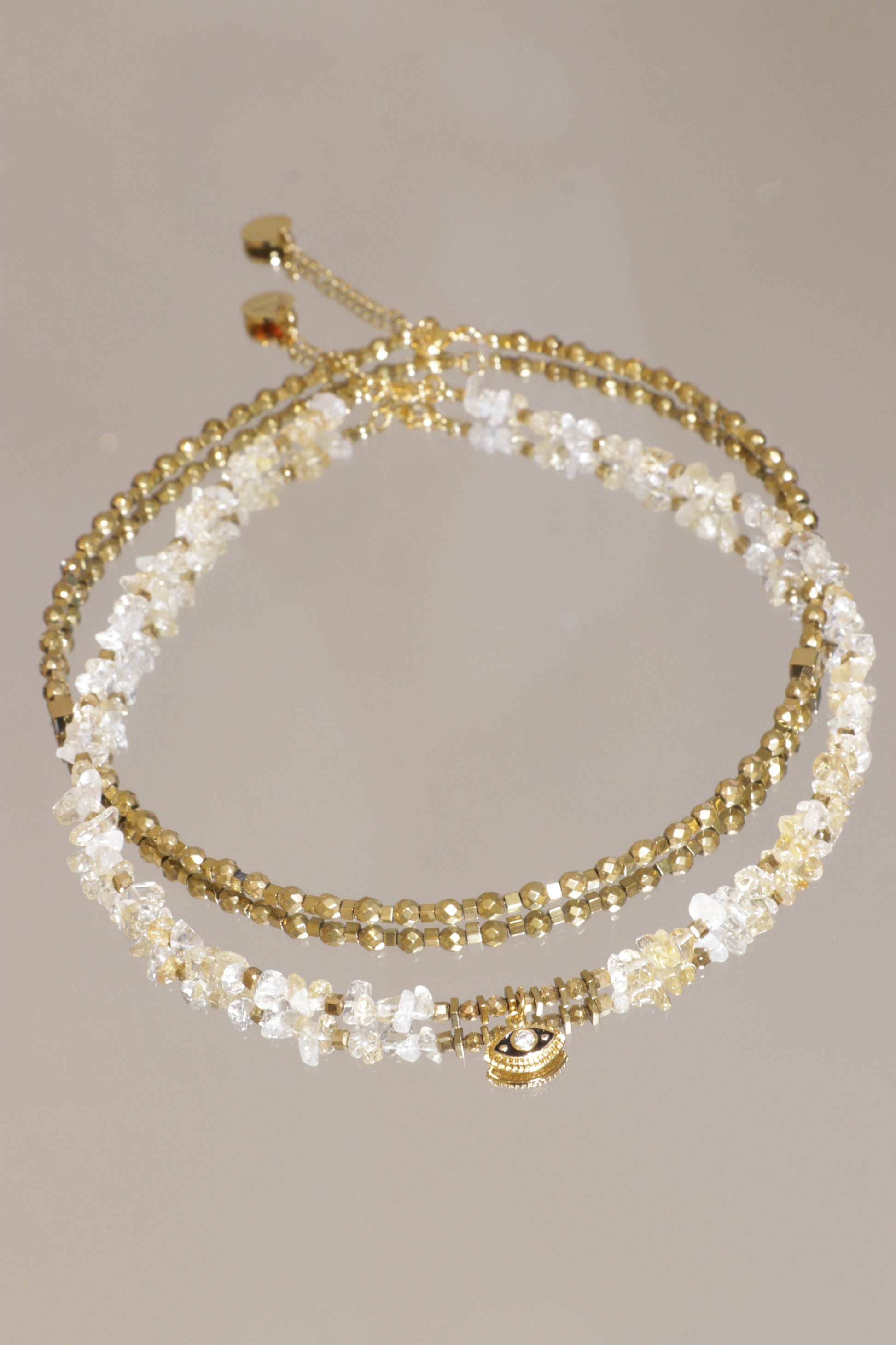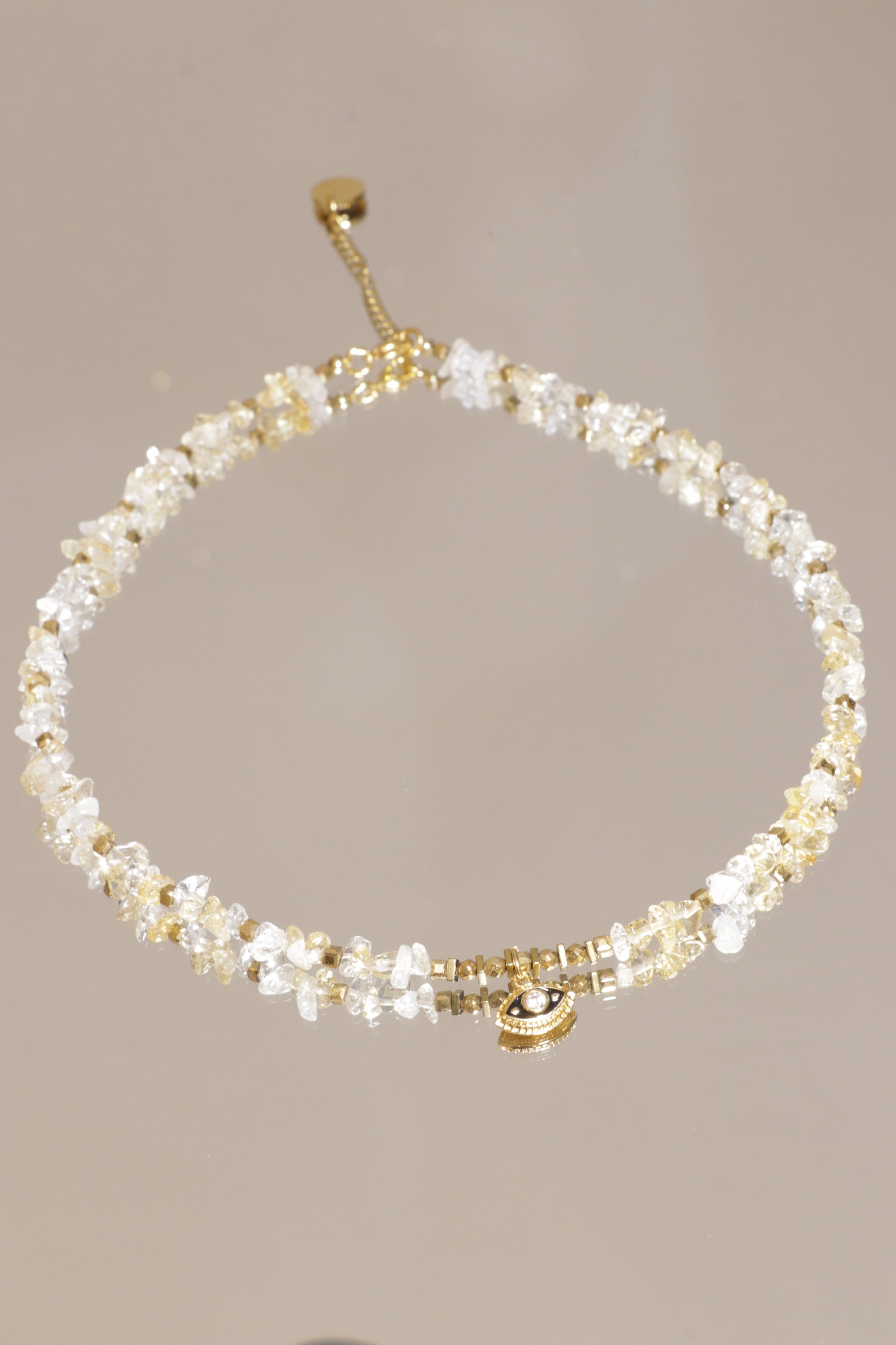 Collier Tour de cou LAKSHMI Abondance & Énergie Positive en Citrine pendentif œil de protection